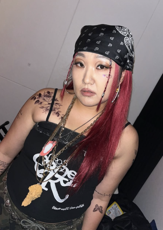 함께 공개된 사진에서는 붉은 헤어와 반다나, 강렬한 메이크업, 그리고 치킨 목걸이까지 장착한 이수지가 ‘힙합 여전사’ 콘셉트로 완전히 변신한 모습이 담겼다.