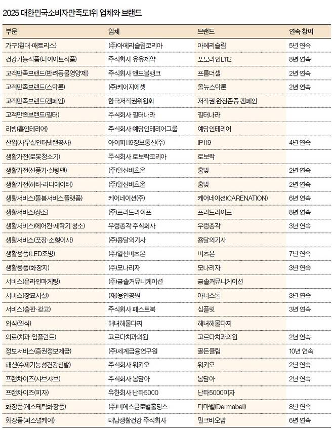 ‘2025 대한민국소비자만족도1위’ 브랜드 발표