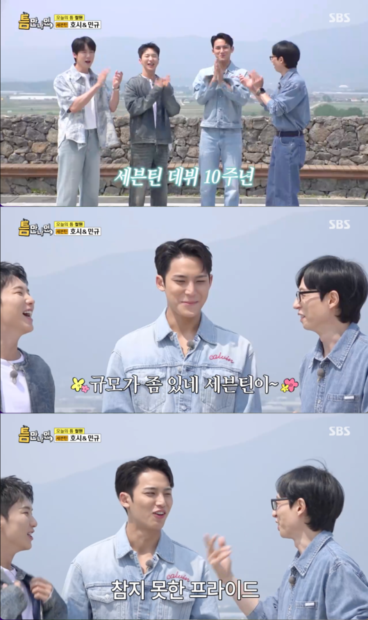 24일 오후 방송된 SBS '틈만 나면,'에서는 '틈 친구'로 세븐틴 호시, 민규가 출격했다.