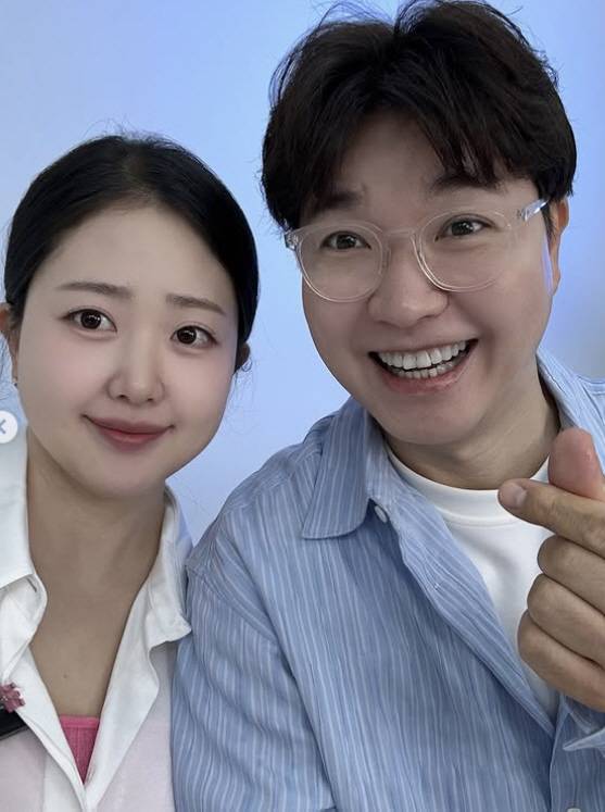 공개된 사진에서 박수홍 김다예 부부는 함께 라이브 방송을 진행하고 있다.