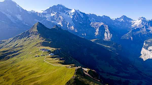 파노라마 하이킹은 말 그대로 '큰 전망'을 보는 코스란 뜻이다. 과장이 없는 스위스 남부 산악지역 주민들 성향을 감안하면, 극찬에 가까운 코스명이다. 이유는 멘리헨의 위치에 있다. 아이거, 묀히, 융프라우 능선과 쉬니케플라테 사이에 있다. 정면으로 압도적인 3대 미봉을 보고, 뒤로는 평화로운 알프스 산간마을을 볼 수 있는 중간 자리에 있다.