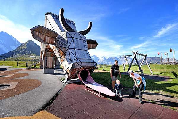 특히 멘리헨에는 '천국의 놀이터'라는 별명이 있는 '알파인 목동 놀이터'가 어른들도 미끄럼틀을 타게 만든다. 알프스 젖소를 본 따 만든 20m 높이의 미끄럼틀과 시소, 해먹, 목마 같은 창조적이고 친환경적인 놀이기구들과 싱그러운 알프스 초원, 신화 속 영웅처럼 솟구친 흰 산의 향연은 부모라면 누구나 자녀를 데려오고 싶은 충동이 드는 곳이다.