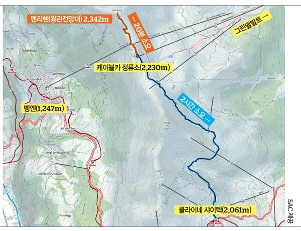 출발지인 멘리헨에 오르는 것부터 즐거움이 시작된다.