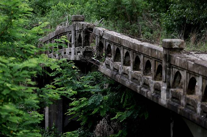 한국전쟁 발발 75주년을 앞둔 2025년 6월16일. 금방이라도 무너질 듯한 격자무늬 교각이 아치형 난간과 상판을 힘겹게 떠받치고 있다. 다리 곳곳은 무너지고 갈라져 콘크리트와 자갈, 시뻘건 철근이 속살을 드러냈다. 한때는 물자를 실은 마차가 오가고, 저마다의 희로애락이 담긴 사람들의 발걸음이 지나던 이 다리를 이제는 북쪽에서 흘러오는 화강(꽃강)과 무심히 서 있는 나무와 꽃, 풀, 산만이 기억하는 듯하다.