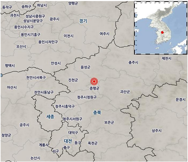 충북 증평서 2.2 지진...'계기진도 4' 흔들림 느껴져