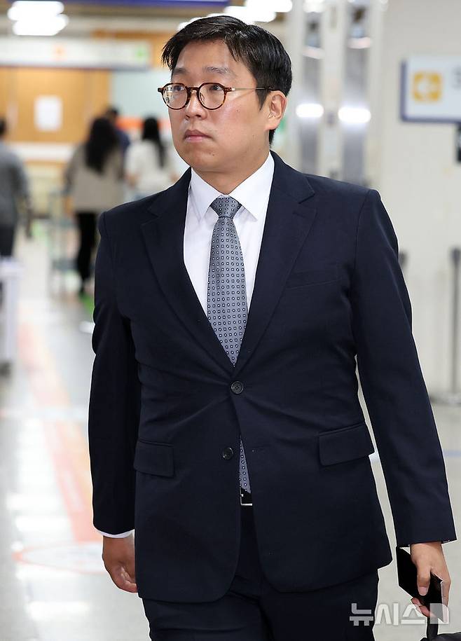 [서울=뉴시스] 이영환 기자 = 김용현 전 국방부 장관의 변호인 유승수 변호사가 25일 오전 서울 서초구 서울중앙지방법원에서 열린 김 전 장관의 구속영장 심문기일에 출석하고 있다. 2025.06.25. 20hwan@newsis.com