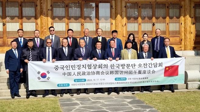 | ▲ 중국인민정치협상회의 지난 2024년 10월 국회 사랑재에서 중국인민정치협상회의 한국방문단 오찬간담회를 마치고 기념촬영을 한 권기식 회장(앞줄 왼쪽부터 7번째). |