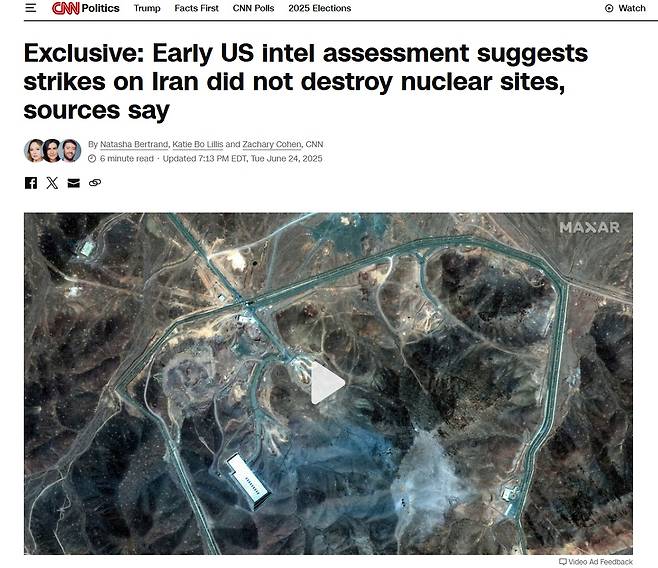 | ▲ 미 CNN은 24일(현지 시각) 미국의 공습이 이란 핵시설을 완전히 파괴하지는 못했다고 보도했다. |