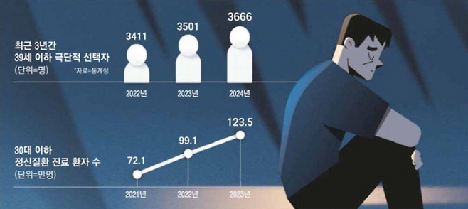 저무는 청춘들의 현실이 매년 우울한 통계로 복제되는 광경을 더 이상 보고 싶지 않다. 부모 세대는 일방적인 꾸짖음 대신 “괜찮니?”라며 먼저 질문을 던지고, 국가는 뒤에서 청년을 괴롭히는 일자리·주거·대인관계 등 구조를 바꾸는 해법을 내놔야 한다. 그래야 청년을 괴롭히는 ‘존재통’의 고리가 끊긴다.