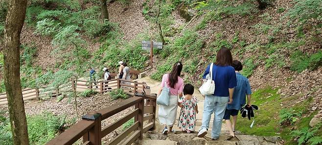 장맛비가 오락가락했던 지난 24일에 마시면 3년 젊어진다는 전설의 약수를 맛보기 위해 부소산성에 들어섰다.