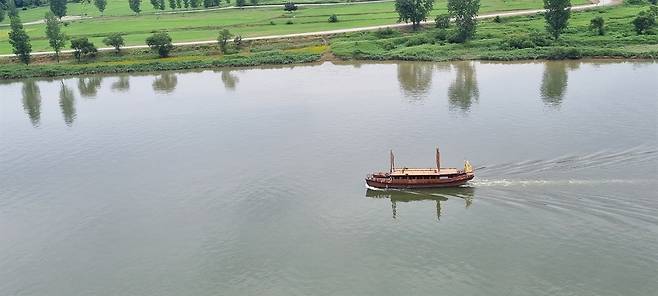 | ▲ 백마강의 황포돛단배 구드래선착장에서 배를 타고 고란사 선착장을 통해 부소산성으로 갈 수 있다 |
