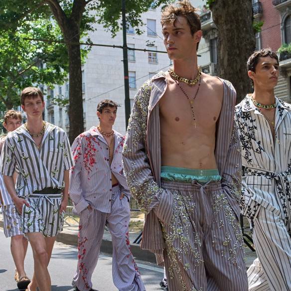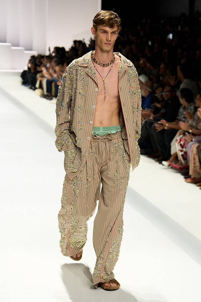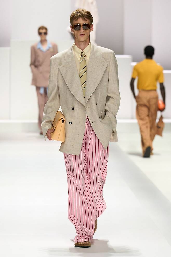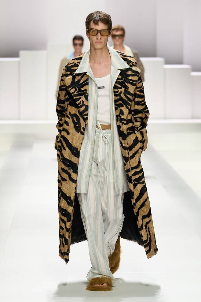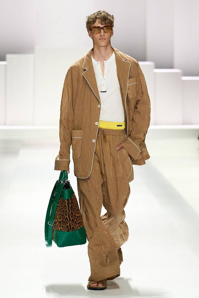 돌체앤가바나 는 에겐남과 테토남을 모두 불러 모았습니다. 돌체의 파자마 보이들은 침실 밖으로 나온 홈웨어의 색다른 변신을 보여줬죠. 의도적으로 구겨진 파자마 셋업과 흐르는 실크 소재와 만난 단정한 테일러링은 서정적이고 편안한 분위기를 자아냈습니다. 이에 대비되는 과감한 호피 무늬와 풀어 헤친 재킷들, 팬츠와 트렁크의 레이어링은 관능적인 돌체앤가바나식 테토남을 보여줬죠. 드레시한 매력까지 갖춘 파자마 룩. 이쯤 되면 다음 시즌 키워드는 '편안한 럭셔리' 아닐까요?