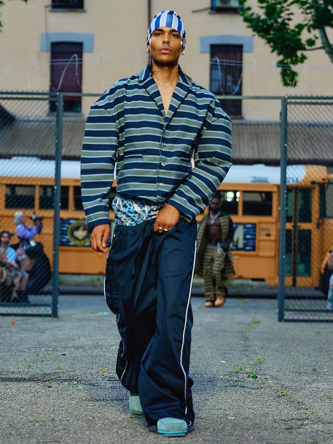이번 밀란에서 가장 거친 테토 패션의 감성을 담은 브랜드 아닐까요? 피드에프 채널 의 테토남들은 힙합 뮤직비디오 주인공처럼 도시를 장악할 듯 등장했습니다. 바지를 내려 입은 새깅 스타일링과 푹 눌러쓴 스냅백으로 걸음걸이마저 남달랐죠. 리한나의 데이트 룩에서도 포착된 이 브랜드, 이제 정말 눈여겨봐야겠죠?