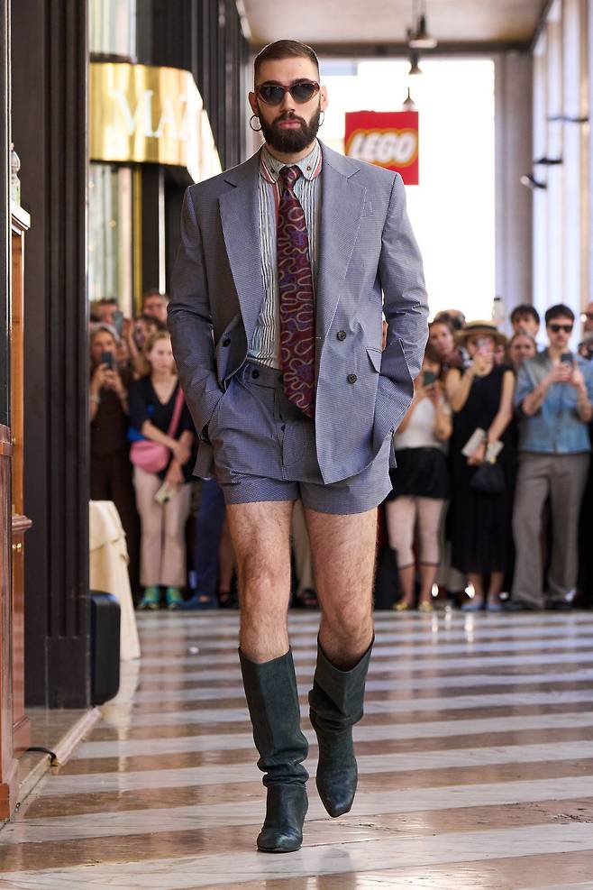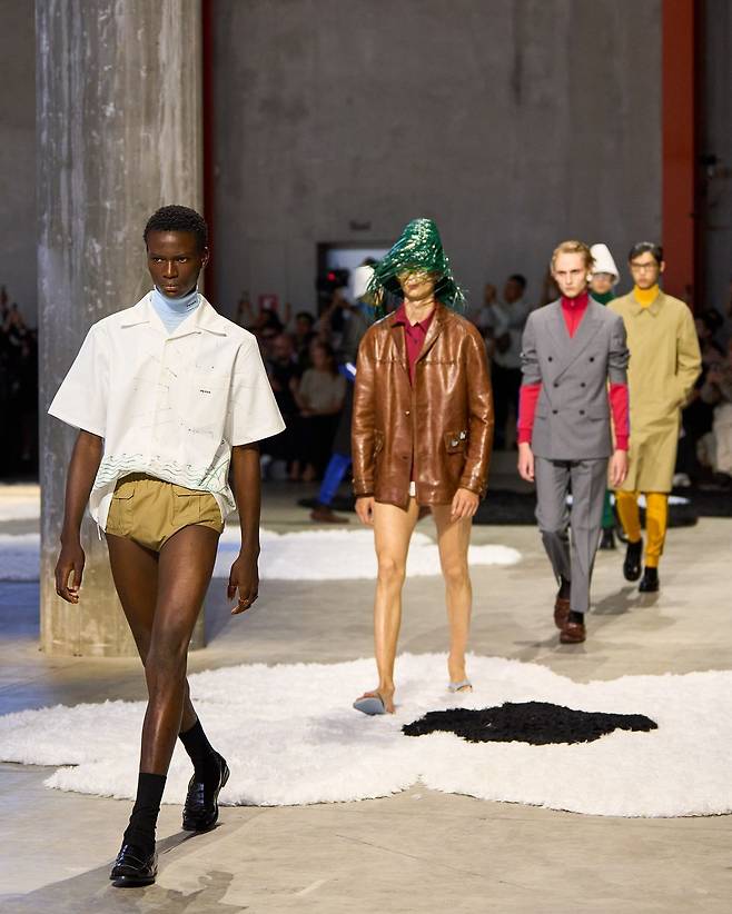 에겐남의 DNA를 가진 이들이 가장 기다렸을 프라다 쇼를 살펴볼까요? 미우치아 프라다는 이번 쇼를 콘셉트적이기보다 본능적이었다고 설명했습니다. 블루머 쇼츠 룩으로 시작된 쇼는 처음부터 끝까지 군더더기 없는 아이템들로 가득했고, 프라다 특유의 컬러들이 유토피아적인 무드를 자아냈죠. 12세 소년부터 80세 여성까지 모두에게 어울릴 룩이 함께 한 이번 쇼는 '조용하고, 차분하게' 프라다의 본질을 다시 선언하는 듯했습니다. 드러낸 만큼 조심스럽고, 꾸미지 않은 만큼 매혹적인 룩들로 말이죠. 어쩌면 매 시즌 한 치씩 짧아지는 프라다 남성 쇼츠의 기장 또한, 미우치아와 라프가 던지는 메시지일지도 모릅니다. 정해진 선에 구애받지 말라고요.