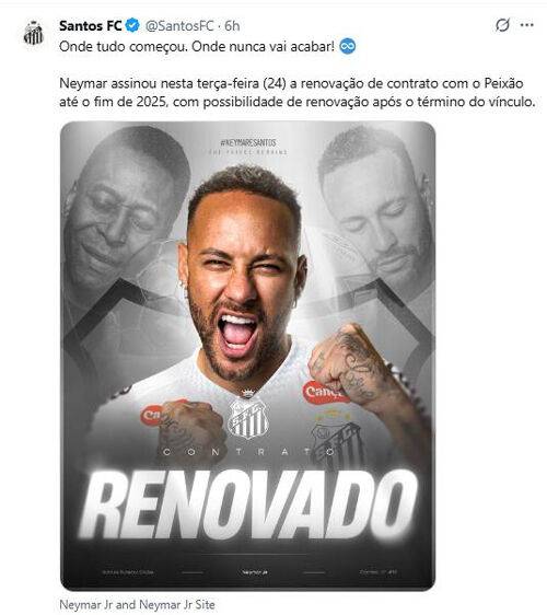 네이마르는 재계약 후 "산투스는 단순한 팀이 아니라, 내 고향이자 뿌리이자 역사이자 삶"이라면서 "이곳이 바로 내 경력에서 놓친 꿈을 이루고 싶은 곳이다. 모든 것이 시작된 곳이자 절대 끝나지 않을 곳"이라고 말했습니다.