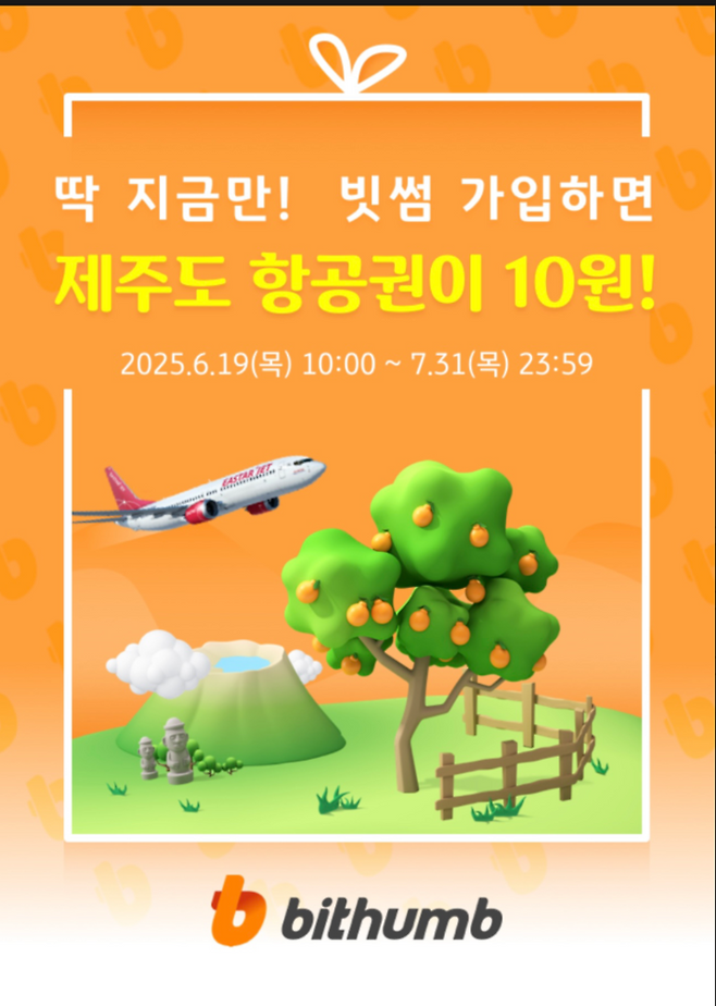 빗썸, KB페이와 신규 회원 제주도 항공권 10원 이벤트