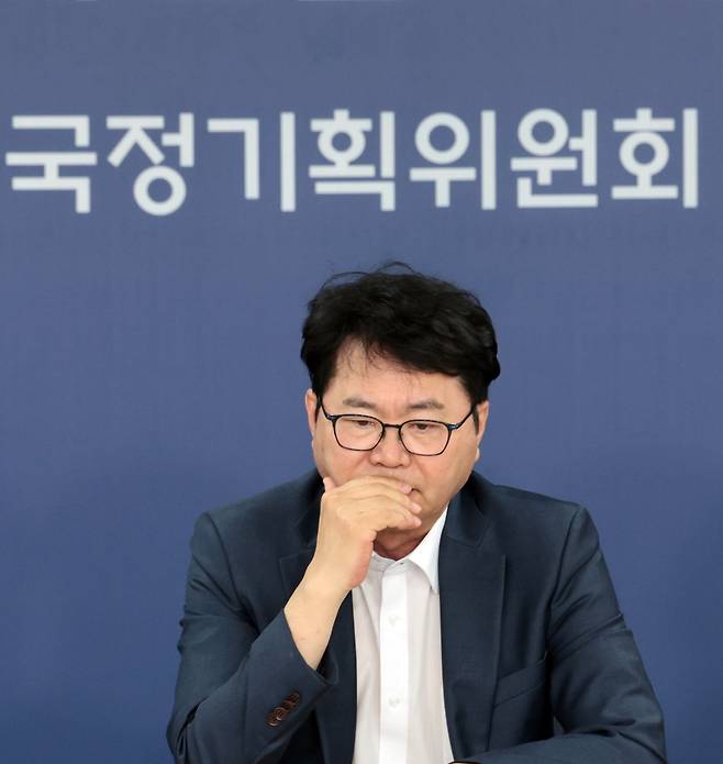 | ▲ 이한주 국정기획위원회 위원장이 22일 서울 종로구 국정기획위원회에서 열린 기자간담회에서 취재진 질문을 경청하고 있다. 2025.6.22 |