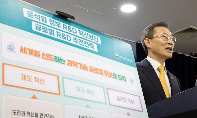 | ▲ 이종호 과학기술정보통신부 장관이 정부서울청사에서 정부 R&D 혁신방안 및 글로벌 R&D 추진전략을 발표하고 있다. 2023.11.27 |