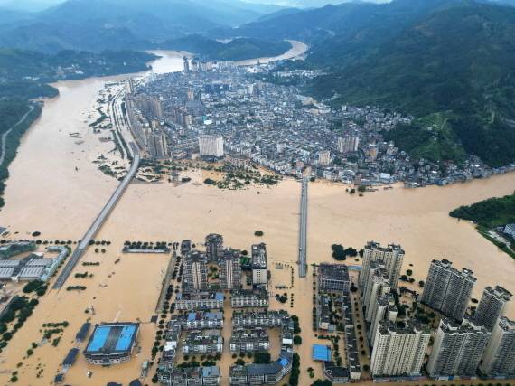 [중국 구이저우성 홍수 (차이나데일리·로이터=연합뉴스 자료사진)]