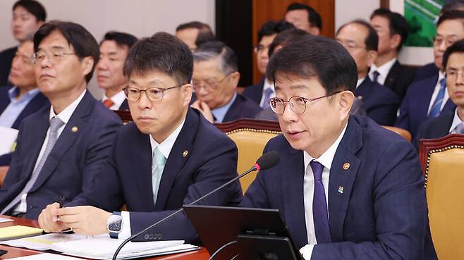 ▲ 박상우 국토교통부 장관이 25일 국회 국토교통위원회 전체회의에서 2025년도 제2회 추가경정예산안 관련 위원 질의에 답하고 있다.