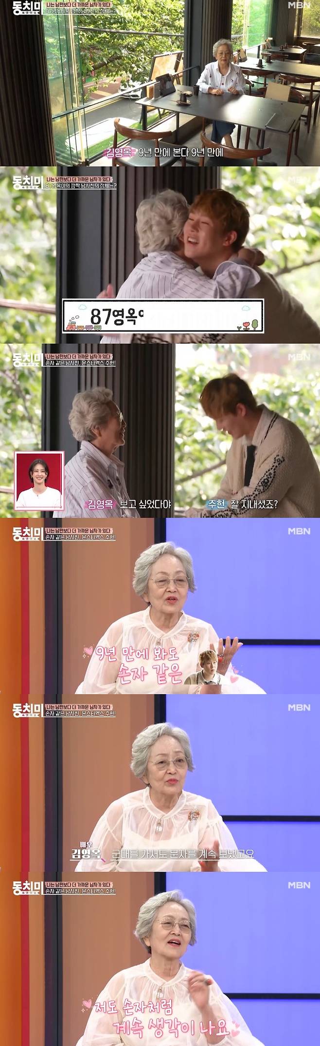 김영옥은 이어 "(주헌이) 군대를 가서도 문자를 계속 보내더라. 나도 자꾸 손자 같이 많이 생각이 난다"며 애정을 드러냈다.