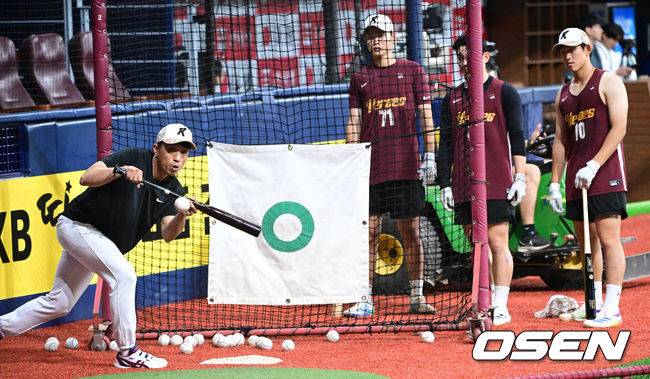 경기를 앞두고 키움 박정음 코치가 선수들과 훈련을 펼치고 있다. 2025.06.25 / dreamer@osen.co.kr