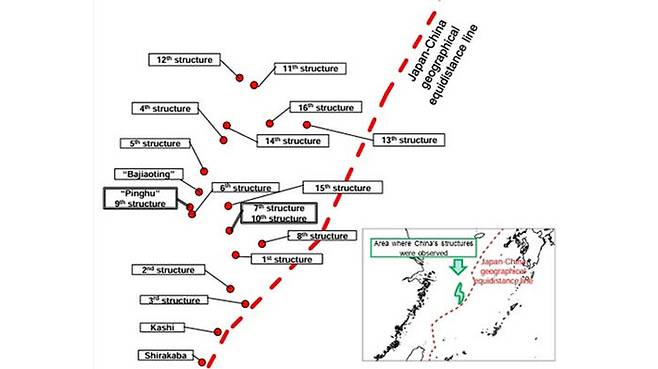 이런 가운데 일본은 자신들이 주장하는 중일 중간선 서쪽에서 그간 총 20기의 중국 측 구조물을 확인했다며 중간선 서쪽이라고 하더라도 중국의 일방적인 개발 행위는 중지돼야 한다고 주장하고 있습니다.