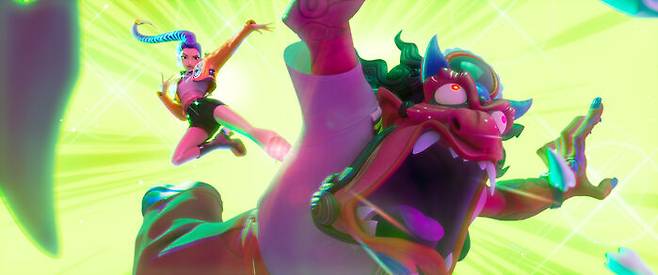 '케이팝 데몬 헌터스'는 케이팝 슈퍼스타인 '루미', '미라', '조이'가 화려한 무대 뒤 세상을 지키는 숨은 영웅으로 활약하는 이야기를 담은 액션 판타지 애니메이션이다. 지난 20일 공개된 영화는 21일부터 23일까지 넷플릭스 월드와이드 영화 부문에서 1위(플릭스패트롤 기준)를 차지하며 인기몰이 중이다.