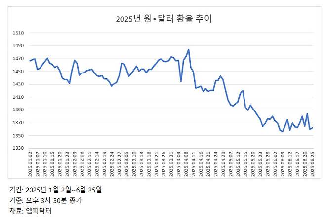 시장 전문가들은 하반기에도 달러가 약세를 나타낼 가능성이 높다고 전망한다. 관세 불확실성이 여전하고 트럼프 행정부의 공급망 재편이 가속화되고 있는 데다, 이로 인해 연방준비제도(Fed·연준)의 금리 인하 속도도 늦어질 수 있어서다.