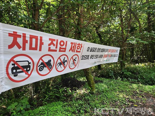 하지만, 영상 속 숲길은 한라산 둘레길로, 숲길 훼손을 막기 위해 제주도가 지난 2023년 8월부터 자전거나 차량 등의 통행을 제한하고 있습니다.