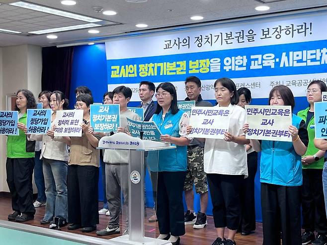 "교사·공무원의 정치기본권 보장은 문재인 전 대통령의 후보 시절 약속이었고, 이번 이재명 대통령의 공약이기도 하다. 이제는 그 약속이 지켜져야 한다. 우리 시민단체들은 정치기본권이 보장된 교사 시민이 민주시민교육뿐 아니라 민주주의 발전의 밑거름이 될 것임을 확신한다."