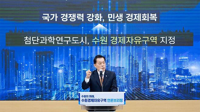 이 시장은 이날 수원시청에서 언론 브리핑을 열고 경제자유구역 유치 의지를 드러냈습니다.