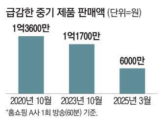 젓갈 제조 중소기업 A사는 한때 홈쇼핑 방송마다 1억원 이상 매출을 내며 쏠쏠한 수입을 올렸다. 하지만 매년 홈쇼핑 매출이 급감하더니 지난 3월 방송에서는 6000만원어치를 판매하는 데 그쳤다. A사 관계자는 "매출 효자였던 홈쇼핑 판매가 좀처럼 회복되지 않고 있다"며 "네이버스토어 같은 온라인 판매로 그나마 매출을 유지하는 중"이라고 토로했다.