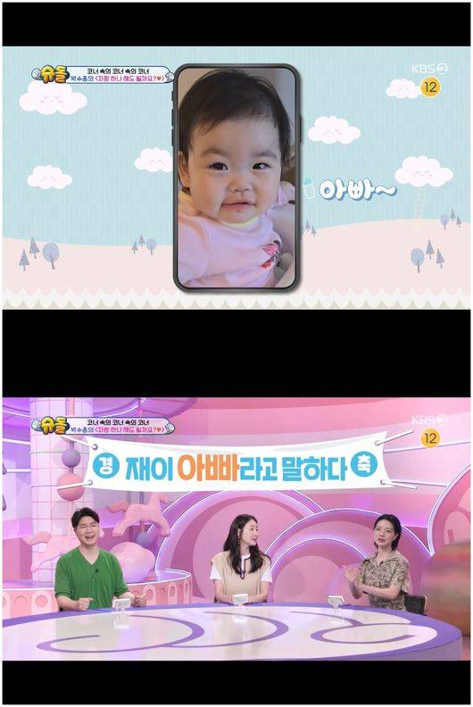 25일 방영한 KBS2TV 예능 ‘슈퍼맨이 돌아왔다’(이하 ‘슈돌’)에서는 오프닝부터 경사를 전했다. 딸 엄마인 최지우는 박수홍에게 "딸 재이가 아빠 발언을 했다면서요?"라고 물었다.