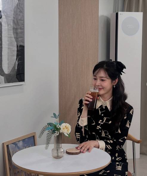 25일 성유리는 커피 한 잔의 여유를 즐기며 환한 얼굴로 미소를 지었다.