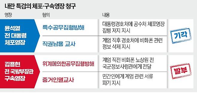 12·3 비상계엄 관련 내란·외환 사건을 수사하는 조은석 특별검사가 윤석열 전 대통령 체포영장을 청구했지만 25일 법원에서 기각됐다. 이에 내란 특검팀은 윤 전 대통령에게 28일 출석해 조사받을 것을 요구했다. 내란 특검이 청구한 김용현 전 국방부 장관의 구속영장은 석방을 세 시간 남겨두고 발부됐다.
