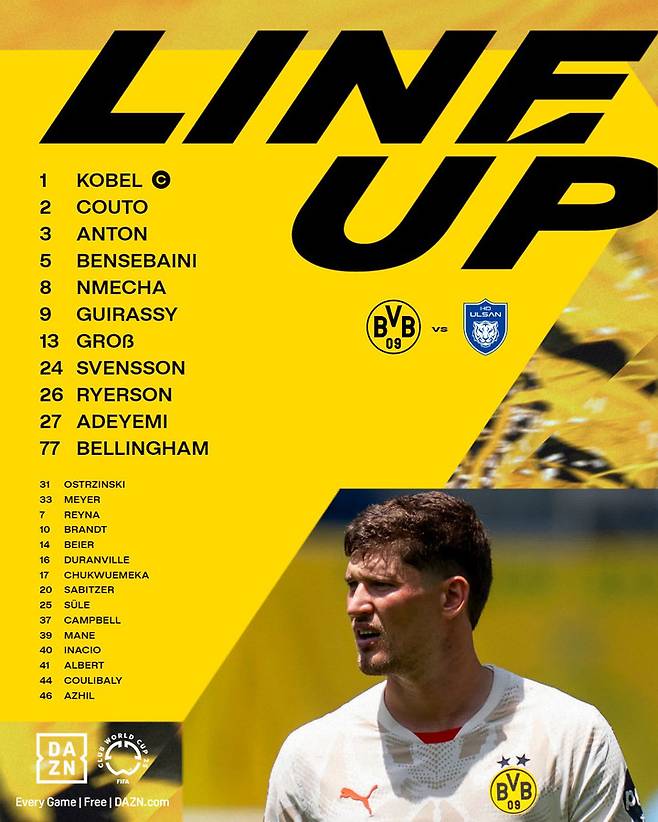 2024-2025 유럽축구연맹(UEFA) 챔피언스리그(UCL) 득점왕 세루 기라시를 필두로 조브 벨링엄 등이 울산전에 선발 출격한다.