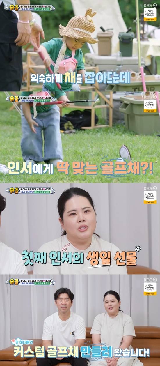 캠핑장에 도착한 박인비는 첫째 딸 인서에게 "골프치러 가자"라고 말했다. 박인비는 "항상 (인서가) 집에서 골프채를 휘두르고 다니는데, 너무 길어서 스윙하기 버거워하더라. 그래서 인서 생일이기도 해서 특별히 인서 골프 클럽을 선물해 주고 싶었다"라며 남다른 선물을 공개했다.