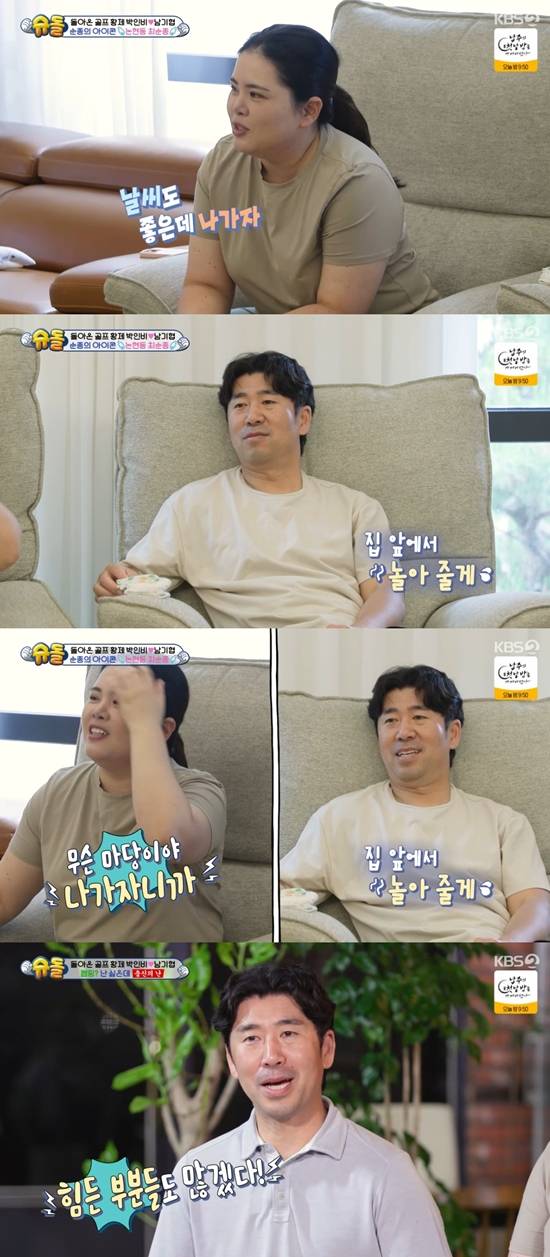 박인비가 "애들 데리고 나들이를 가자"라고 남편에게 제안했다. 남편은 "내가 마당에 데리고 가서 놀겠다"라고 말려봤지만, 박인비는 "무슨 마당이냐. 애들 데리고 나들이나 가자"라고 말했다.