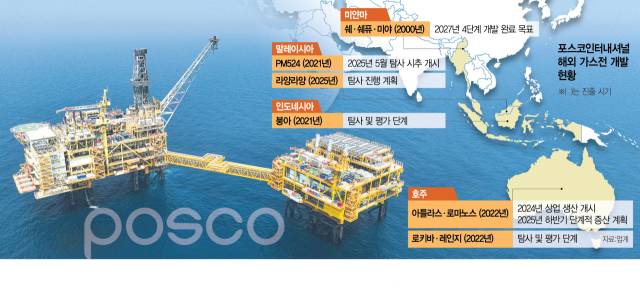 포스코인터내셔널은 안정적 성과를 거두고 있는 미얀마 가스전에 이어 다음 알짜 수익원이 될 해외 광구 개발에 속도를 내고 있다. 포스코인터내셔널은 2000년 미얀마 서부 해상 A-1 광구에서 가스전 개발에 착수해 쉐·쉐퓨·미야 가스전을 차례로 발견해 2013년부터 가스 생산을 본격화했다. 지난해 2분기 기준 미얀마 가스전 사업의 영업이익은 1376억 원으로 전체 영업이익의 40%를 차지했으며 영업이익률은 70% 이상을 기록했다. 지난해 4단계 개발에 돌입해 2027년 생산을 목표로 하고 있다.
