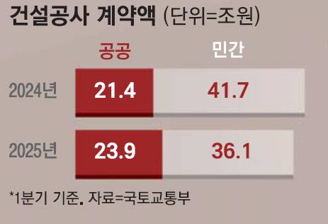 국토교통부에 따르면 올해 1분기 민간의 건설공사 계약액은 36조1000억원을 기록하며 작년 같은 기간보다 13.4% 감소했다.