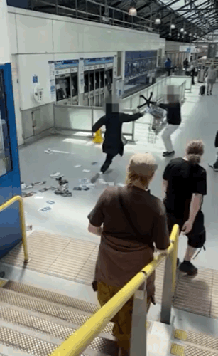 영상에는 한 남성이 혼잡한 역사 안에서 피해자를 향해 돌진하며 안내판을 넘어뜨리고 다른 시민들과 부딪히는 등 아수라장을 연출하는 모습이 포착됐다.
