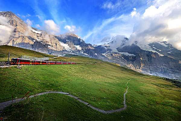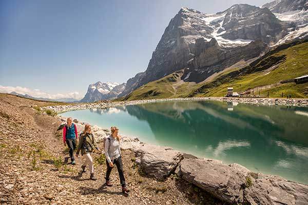 정면으로는 알프스 초원이 빛나고, 오른쪽에는 아이거 북벽, 등 뒤로는 융프라우와 묀히 등 만년설산이 펼쳐진다. 하이킹 중간에는 에메랄드처럼 신비로운 빛깔의 팔보덴호수를 만나게 된다. 호수와 아이거 북벽을 배경으로 평생 기억에 남을 만한 기념사진을 담을 수 있다.