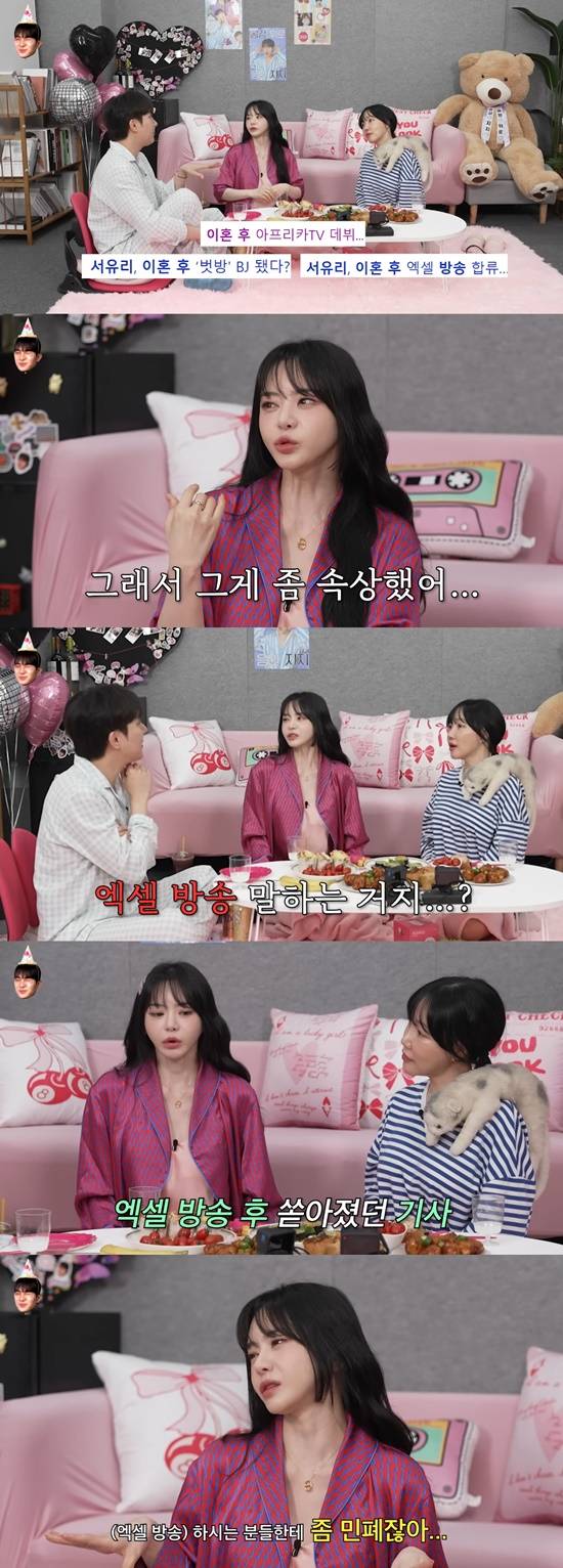 서유리는 "내가 과도하게 반응하며 (엑셀방송) 하시는 분들에게 좀 민폐일 거 같았다. 어떻게 해야할지 모르겠더라.