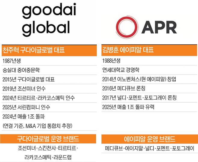 천 대표와 김 대표의 경영 방식은 완전히 다르다. 구다이글로벌이 공격적인 기업인수합병(M&A)으로 사세를 확장하고 있다면, 에이피알은 어떠한 M&A 없이 자사가 론칭한 브랜드를 중심으로 외연을 넓히고 있다.