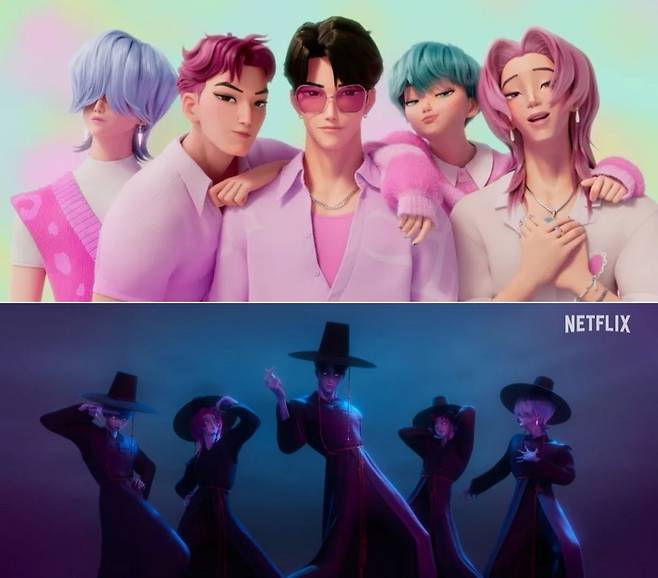 고퀄리티 노래도 킬링 포인트다. 사자보이즈의 데뷔곡 '소다 팝'(Soda Pop)은 청량함과 중독성 있는 멜로디가 특징. '유어 아이돌'은 저승사자 콘셉트로 반전 매력을 더했다.