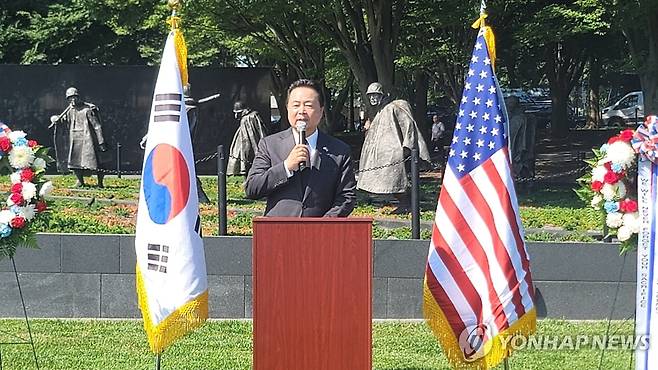 6·25 75주년 추모 행사서 연설하는 조현동 주미대사