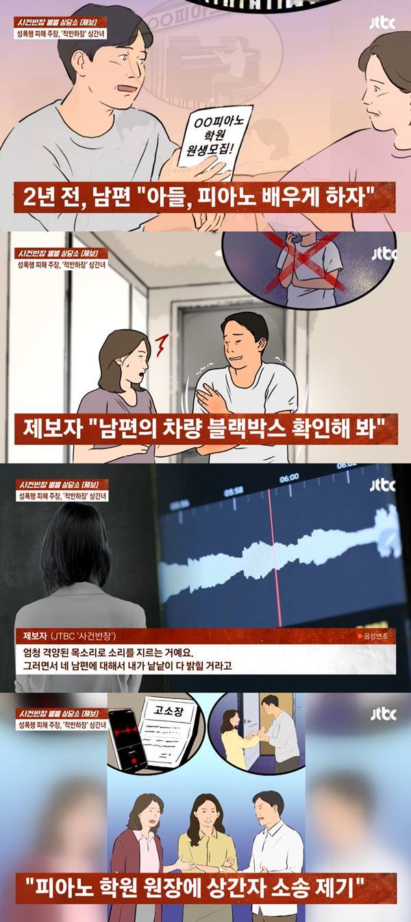 결정적인 의심은 한겨울, 담배를 피우고 돌아온 남편의 팔이 따뜻했기 때문이었다. 이상함을 느낀 A씨는 남편 차량의 블랙박스를 확인했고, 그 안에서 어떤 여성과 다정하게 대화를 나누는 음성을 들었다. 음성의 주인공은 피아노 학원 원장이었다. 남편은 "대학 동기다. 우연히 마주쳤을 뿐"이라며 해명했고, 해당 여성도 유부녀이며 가끔 이야기만 나눈다고 둘러댔다. 공교롭게도 그 여성은 A씨와 같은 아파트 단지에 살고 있었다.