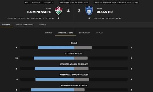 세 경기 모두 수비 위주의 전술을 택했지만 결과는 냉혹했다. 마멜로디전은 점유율 30%에 슈팅 수 8-14로 밀렸고, 플루미넨시와의 경기에서는 아예 공격을 포기한 듯 28%의 점유율에 26개의 슈팅을 허용했다. 도르트문트전에서는 전반 슈팅 수 0-20이라는 기록적인 수치까지 나왔다.