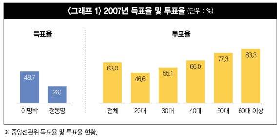 이명박 500만 표 차이 압승, 20∼30세대 기권 착시효과